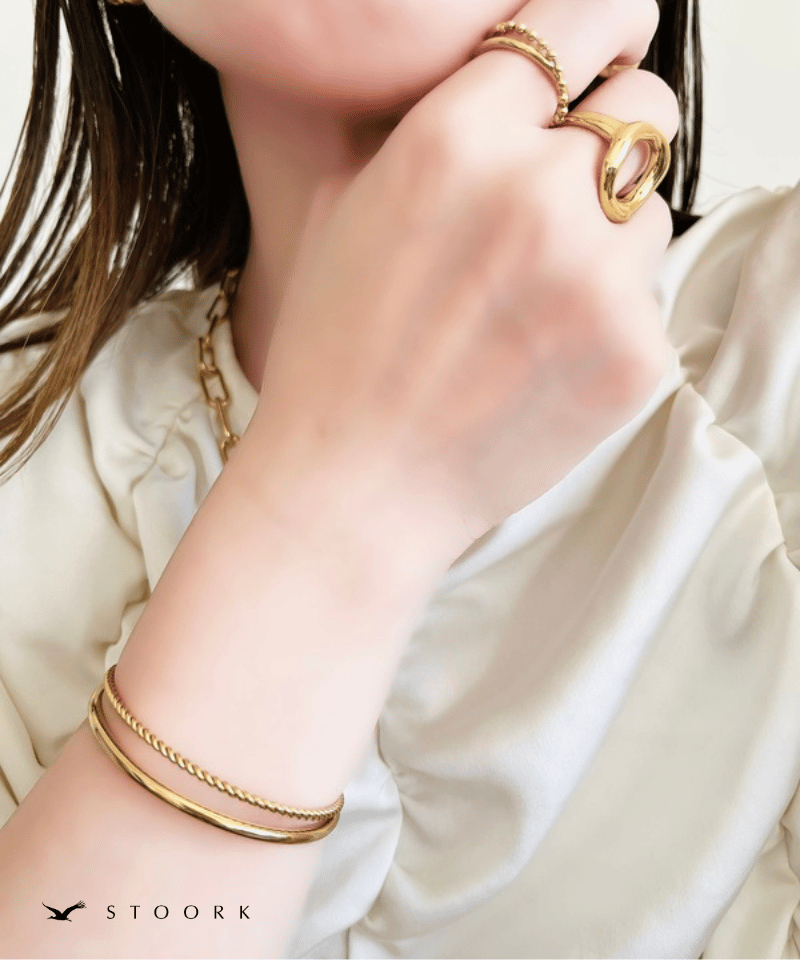 一本で重ね付けしているようなボリューム感があり、腕元を華奢に見せつつ、トレンド感も演出できます。